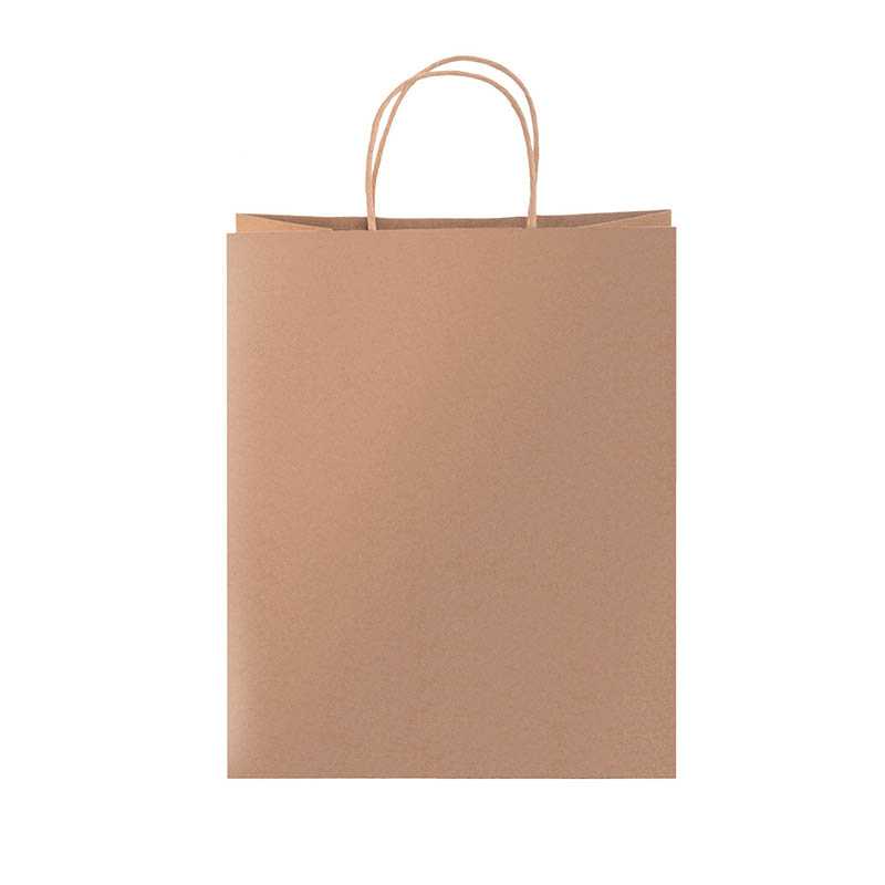 Darčeková taška z recyklovaného kraftového papiera s vianočným dizajnom vyrazeným fóliou, krútenými uchami a darčekovou visačkou. 140 g/m2.