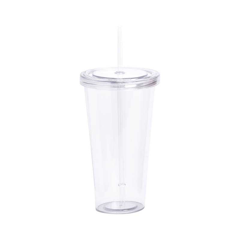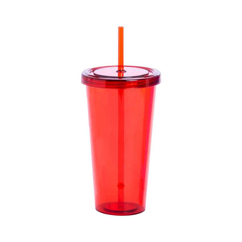 Farebný, priehľadný plastový kelímok so slamkou, 750 ml.