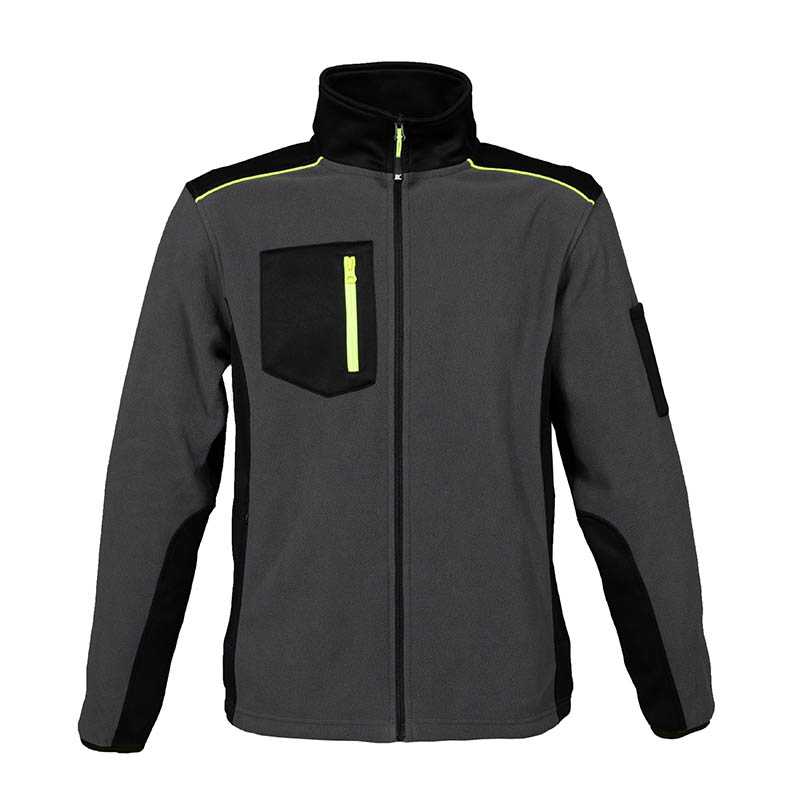 BICOLOURED ANTIPILLING FLEECE - 100% polyester - Hips, shoulders, upper back, collar and forearms in bonded interlock fabric - YKK taped zippers - Front fluo yellow piping on the shoulders and on the back - Long zip - One chest pocket with neon yellow zip - Triple pen holder on the arm - Two zip pockets - Elastic fabric at the wrists - Drawstring at the bottom - Item sold in single box