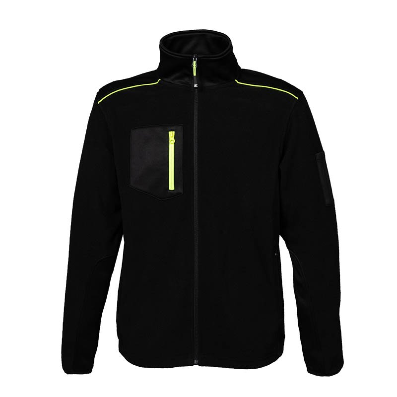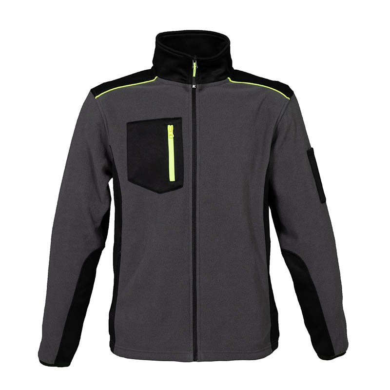 BICOLOURED ANTIPILLING FLEECE - 100% polyester - Hips, shoulders, upper back, collar and forearms in bonded interlock fabric - YKK taped zippers - Front fluo yellow piping on the shoulders and on the back - Long zip - One chest pocket with neon yellow zip - Triple pen holder on the arm - Two zip pockets - Elastic fabric at the wrists - Drawstring at the bottom - Item sold in single box