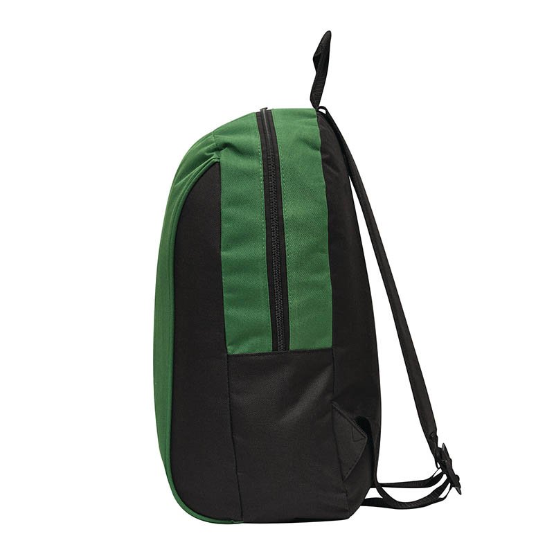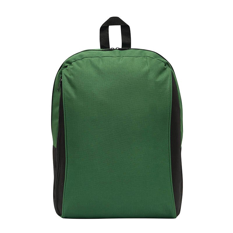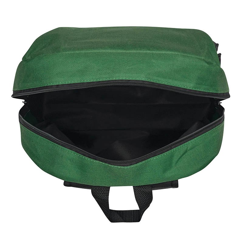 Batoh RPET s priehradkou na zips a predným vreckom, bočné sieťované vrecká, polstrovaný chrbát a ramenné popruhy. 300D RPET polyester s výrazným štítkom RPET.