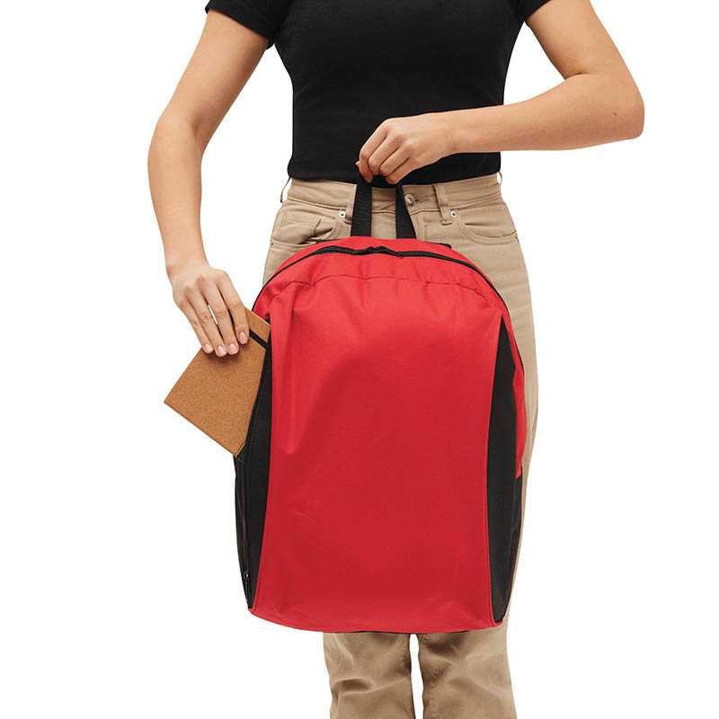 Batoh RPET s priehradkou na zips a predným vreckom, bočné sieťované vrecká, polstrovaný chrbát a ramenné popruhy. 300D RPET polyester s výrazným štítkom RPET.