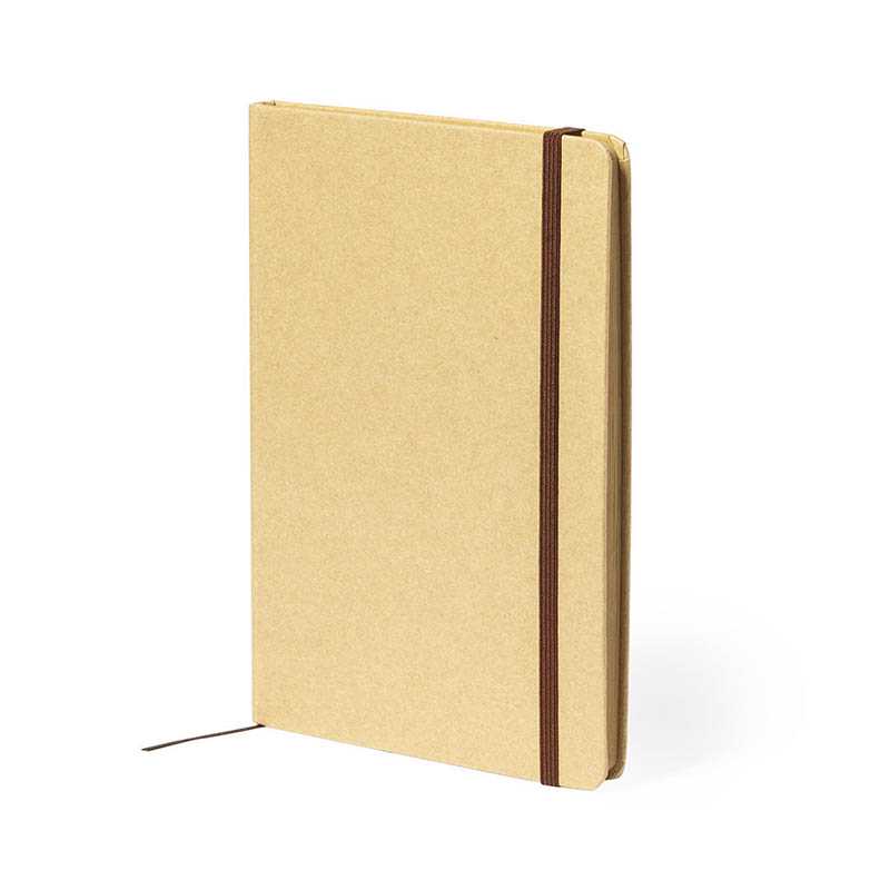Blok potiahnutý recyklovanou PU kožou so 100 linkovanými listami z recyklovaného papiera. So záložkou v zodpovedajúcej farbe a gumičkou. Veľkosť A5.