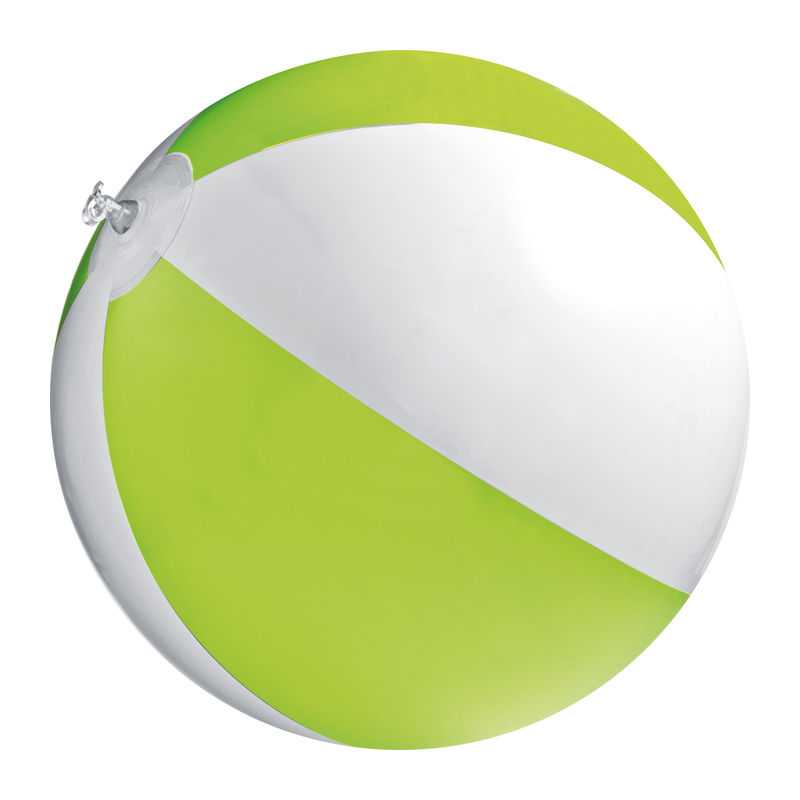 Dvojfarebná plážová lopta s priemerom 40 cm v 8 pestrých farbách z polyesterového materiálu, ktorý zodpovedá všetkým normám EU. Neobsahuje ftaláty.