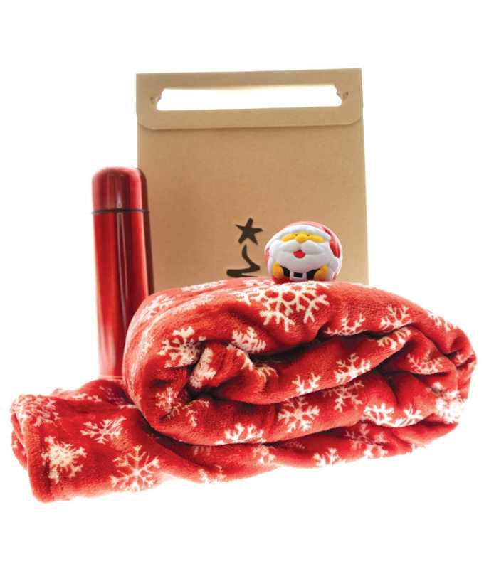 Vianočná deka 150 x 120 cm, antistres santa claus, termoska 500 ml. Darčeková taška 40 x 28 x 10 cm