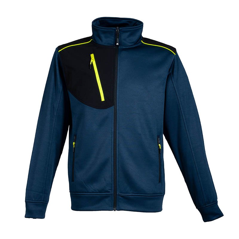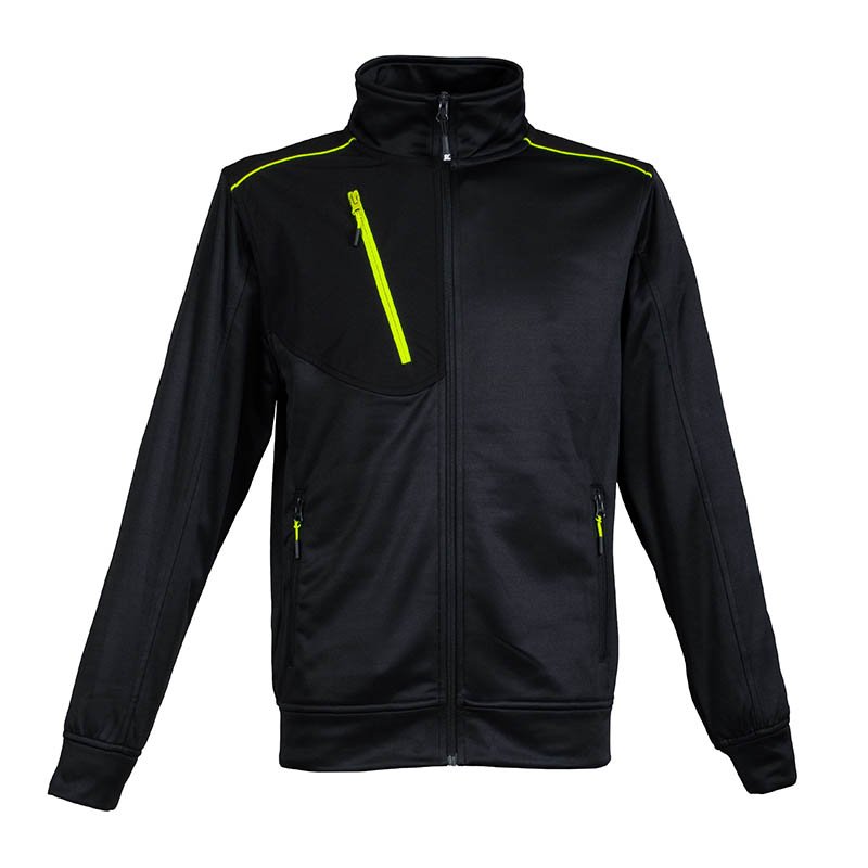 Two-tone sweatshirt 80% cotton - 20% polyester - Long zip - Taped zip - Fluorescent yellow piping on the front on the shoulders and on the rear on the back - A zip pocket on the chest - One arm pocket with zip and double pen holder - Two zip pockets - Collar, cuffs and knit bottom in elasticated rib - Fluorescent yellow reinforcement tape inside the neck - Riveted seams