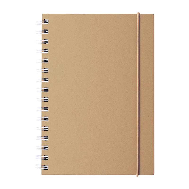 Blok A5 s doskami z recyklovanej lepenky s hrebeňovou väzbou a 80 linajkovými listami.
