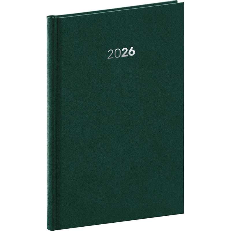 Plánovací týždenný diár Balakon 2026 v zelenom prevedení, doplnený o strieborný letopočet. Povrch diára si získal obľubu vďaka kvalitnému vrchnému materiálu, ktorý je extrémne odolný voči vonkajšiemu poškodeniu. 2025Týždenný rozvrh s česko-slovenským kalendáriom a doplnkovou angličtinou, nemčinou, maďarčinou a ruštinou.• kalendárium od decembra 2025• mesačný plánovací kalendár 2026 • mesačný plánovací kalendár 2027 • ročný plánovací kalendár 2026–2027 • pracovný plánovací kalendár • sviatky Českej a Slovenskej republiky a medzinárodné sviatky • rozšírený zoznam českých mien údaje • textilná záložka • perforované rožky • priestor na poznámkyRozsah: 144 strán. Rozmer: 15 x 21 x 2 cm. Hmotnosť: 0,28. Papier: 90 g/m2. Väzba: tuhá knižná. Kalendárium: 6 jazyčné (CZ, SK, GB, DE, HU, RU) .