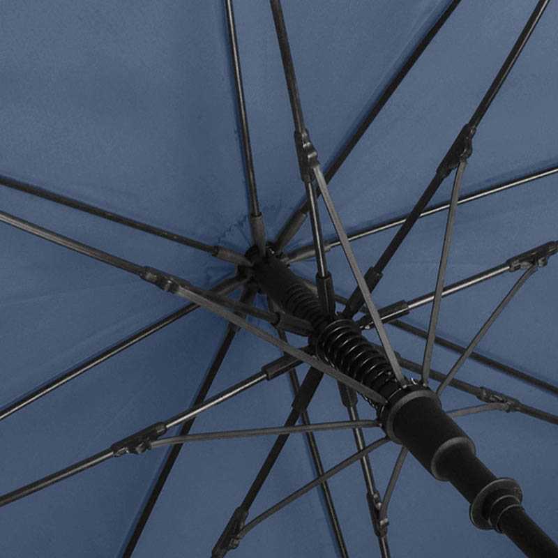 Convenient automatic function for quick opening, high-quality Windproof PLUS system for maximum frame flexibility in stormy conditions, flexible fibreglass ribs, sturdy fibreglass shaft, water and dirt-repellent cover properties through original Teflon™ fabric protector, with waterSAVE® label on the closing strap (with new deliveries), Soft-Touch crook handle with integrated push-button (suitable for laser print), large, accommodating diameter