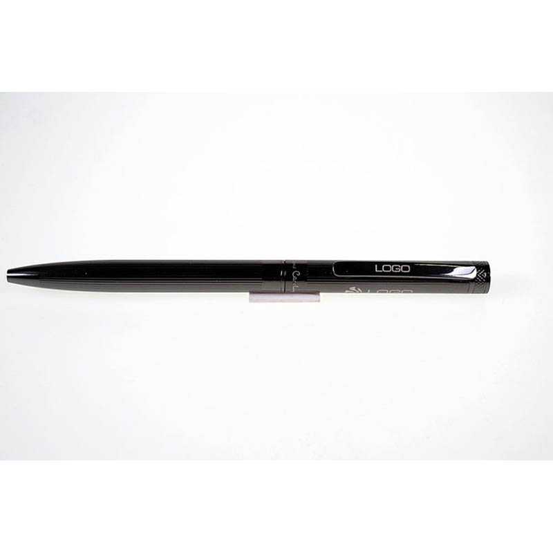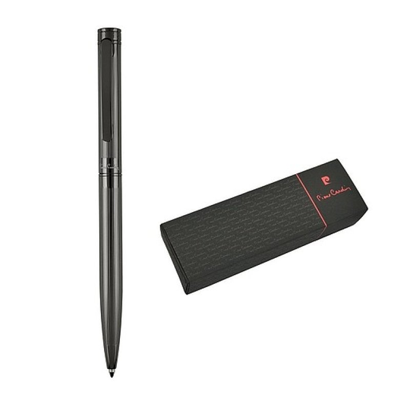 Značkové guľôčkové pero Pierre Cardin. Kovové telo pera má jemné rytie po celej dĺžke povrchu. Pero je navrhnuté s otočným mechanizmom a obsahuje kvalitnú náplň v modrej farbe s hrotom 1 mm. Má priloženú náhradnú čiernu náplň. Balené v luxusnej krabičke Pierre Cardin, dodávané s certifkátom pravosti. Odporúčaná technológia potlače: gravír, kartička. Maximálna veľkosť potlače: 25 × 4 mm. Rozmery: guľôčkové pero 1,2 × 14,2 cm; balenie 17,5 × 5,5 × 3,5 cm. Kartónové množstvo v ks: 20.