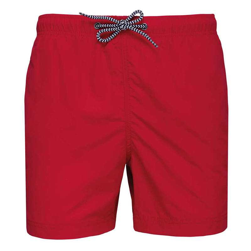 Sportovní kraťasy z recyklovaného polyesteru.Vodě a větru odolný, rychle schnoucí, materiál.Elastický pas se šňůrkou na zavazování.Po stranách kontrastní barva.Uvnitř slipová vložka.Malá kapsička na zip .1/50 . (ks v jednom sáčku / celkem ks v kartonu).