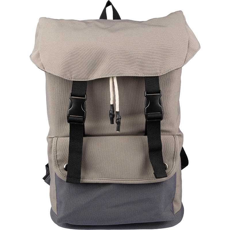 NOVINKA 2025. Backpack made primarily from soft recycled cotton. With a main pocket with double pull zipper closure. Interior pocket for laptops up to 15 inches. Includes two front pockets with zipper closures and side pockets. Padded back and straps, with breathable fabric and adjustable. Includes strap for trolley or suitcase adjustment, ideal for travel. With distinguishing label on the outside, as well as a distinctive hashtag.