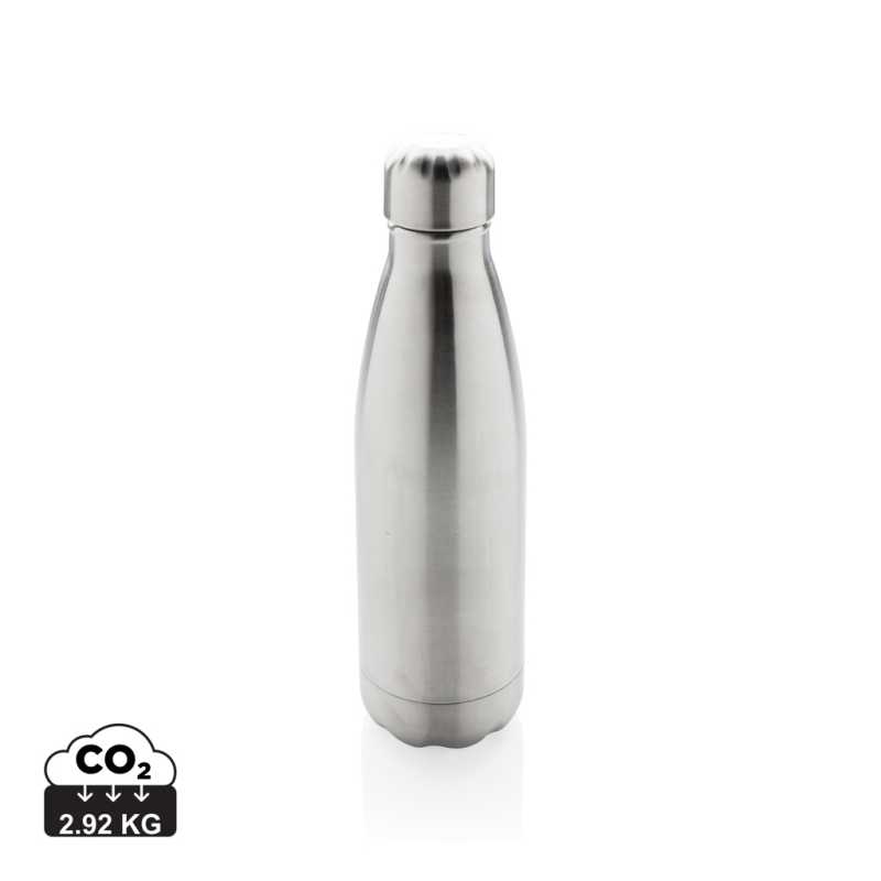 Ľahká opakovane použiteľná fľaša na vodu vyrobená z odolnej recyklovanej nehrdzavejúcej ocele 18/8. Ideálna veľkosť, nízka hmotnosť a nepriepustné viečko z nej robia perfektnú fľašu pre každodenné použitie a udržiavanie pitného režimu. Odporúča sa iba pre studené nápoje. Vyrobená z RCS recyklovanej ocele. RCS (Recycled Claim Standard) je globálny štandard, ktorý umožňuje overiť použitie recyklovaného materiálu v produkte naprieč celým dodávateľským reťazcom. Celkový podiel recyklátu podľa váhy produktu: 80%. Objem: 500 ml. Bez BPA. Balené v FSC® kraftovej darčekovej krabičke.