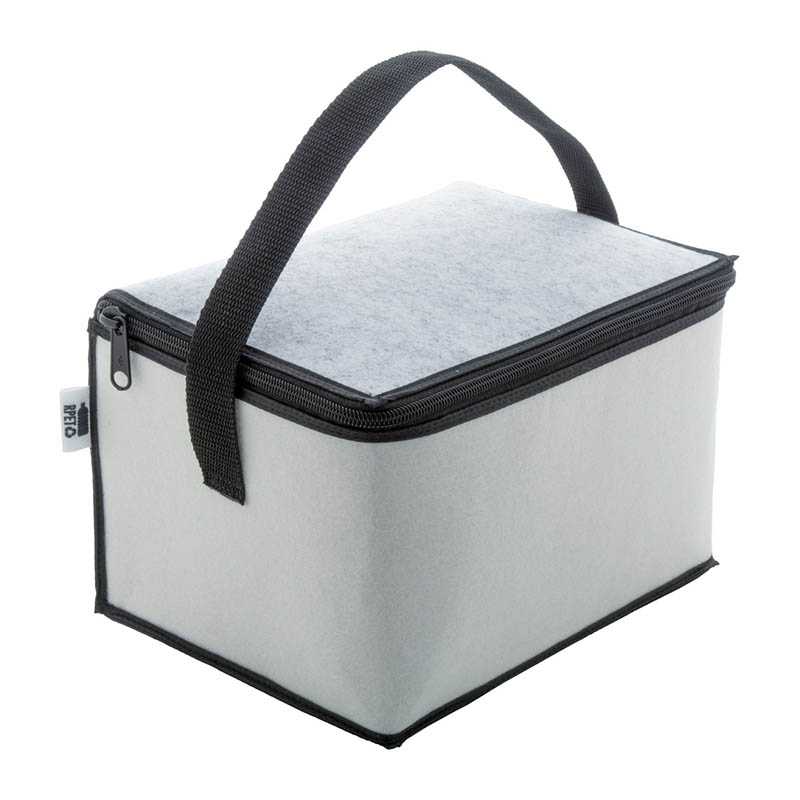 NOVINKA 2024.Na zákazku vyrobená chladiaca taška na zips z RPET plsti s celofarebne potlačenou prednou stranou a hliníkovou vložkou. Pre 6 ks plechoviek 0,33L. S výrazným štítkom RPET. Cena vrátane sublimačnej tlače, nezahŕňa tlačovú prípravu. Min. mn.: 5