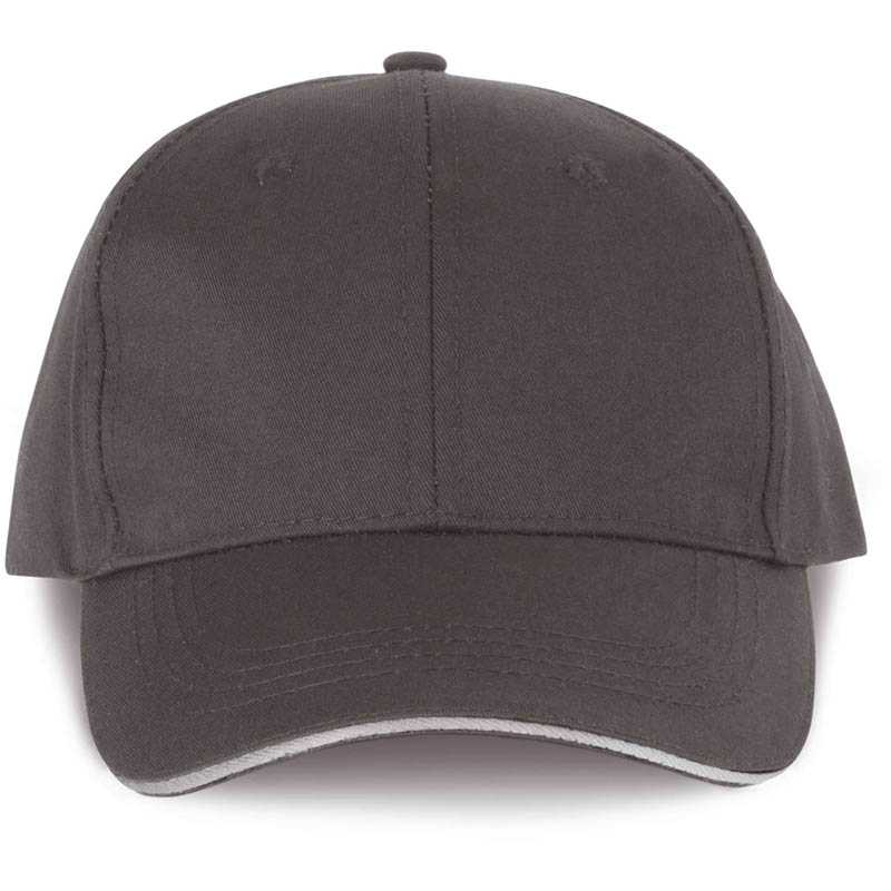 šesťpanelový strih, vystužené 2 predné panely, prešívaný, zľahka prehnutý šilt s kontrastným pásikom, obšité vetracie otvory, potiaca páska, veľkosť nastaviteľná mosadzným cvokom.Brúsený keper, 100 % bavlna.