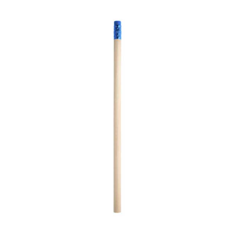 Wooden pencil with graphite lead, cylindrical cross-section, coloured barrel and matching rubber, sharpened