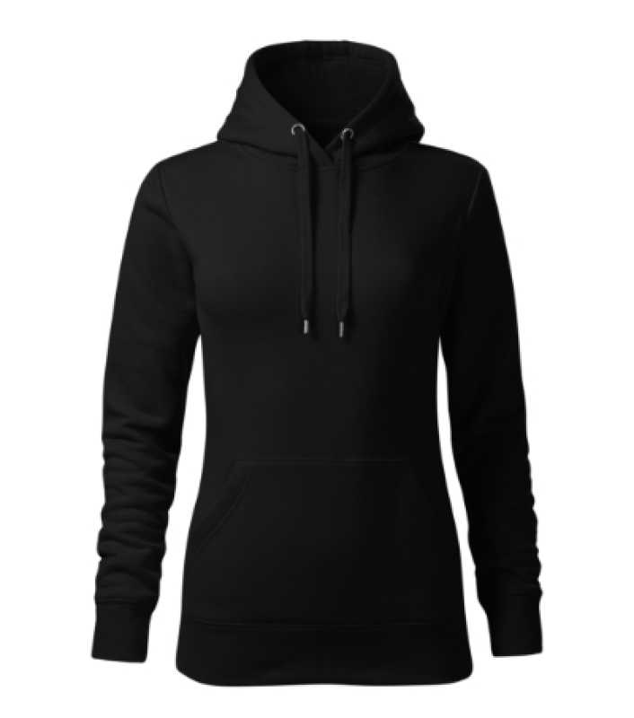 zľahka vypasovaný strih s bočnými švami, kapucňa s podšívkou, na stiahnutie šnúrkou, vnútorná časť priekrčníka začistená páskou vo farbe povrchového materiálu, nakladané vrecko v štýle klokanky, dolný lem a manžety rukávov z rebrového úpletu 2:2 s 5 % ela