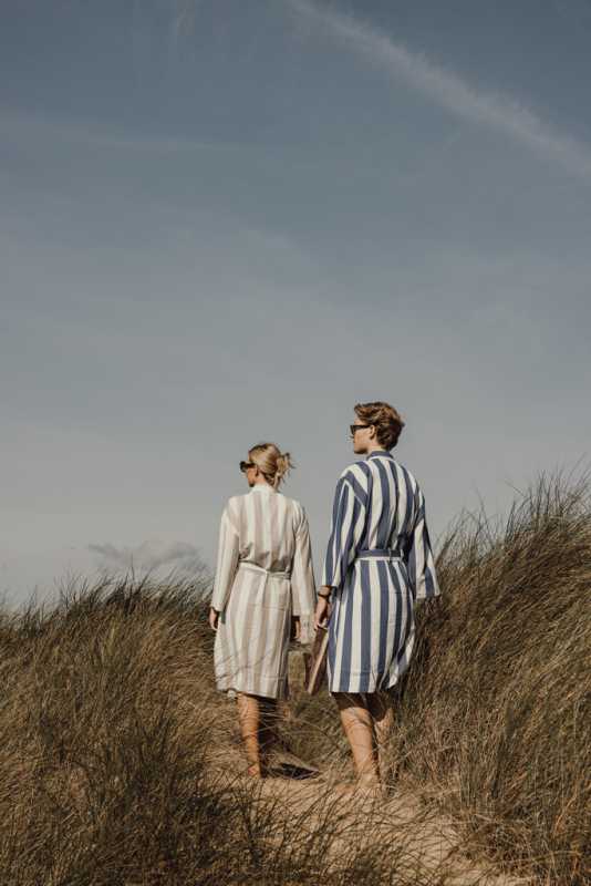 NOVINKA 2025. Vezmite si tento mäkký a pohodlný župan hamam na pláž alebo si ho jednoducho užite doma. Je vyrobený z ľahkej a vzdušnej zmesi s gramážou 200 g/m2 a kombinuje pohodlie bavlny s rýchloschnúcimi vlastnosťami polyesteru. Je navrhnutý s dvojfarebným pruhovaným vzorom, má elegantný golier, predné vrecká, 3/4 rukávy a opasok v páse pre dokonalé prispôsobenie. Certifikácia GRS zaručuje, že celý dodávateľský reťazec recyklovaných materiálov je certifikovaný. Celkový obsah recyklovaných materiálov vychádza z celkovej hmotnosti výrobku. Tento výrobok obsahuje 69% recyklovanej bavlny s certifikáciou GRS a 29% recyklovaného polyesteru s certifikáciou GRS.