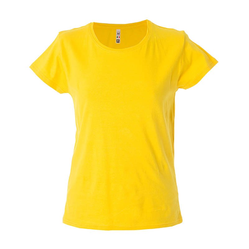 QUALITY - 150 JERSEY;100% semi-combed Ringspun cotton;Reinforcing tape on neck;Jersey neckline;STYLE - FEMININE;Short sleeves;Fitted cut;Thin collar;Cut and sewn;