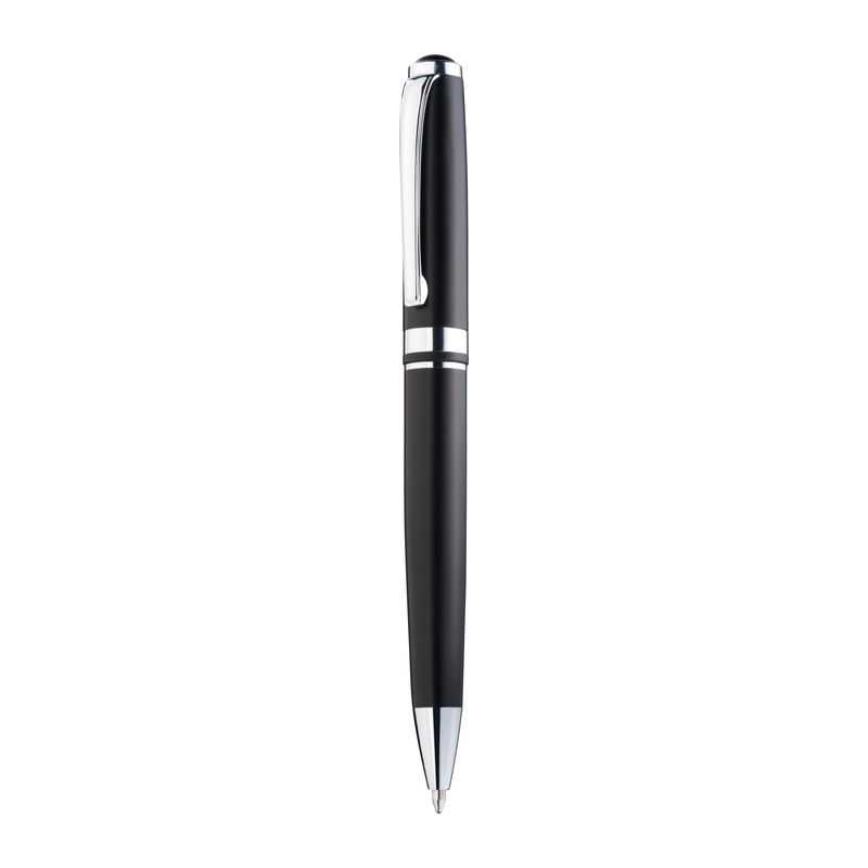 Kovové kuličkové pero s lesklým lakovaním v kartonovém dárkovém obalu. Černý inkoust.