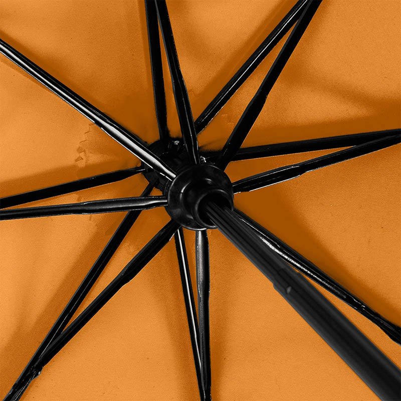Plne automatický (otváranie/zatváranie), vetruodolný skladací dáždnik s 8 panelmi. S kovovou tyčkou, rámom z kovových/sklených vláken a odpovedajúcim farebným púzdrom a plastovou rukoväťou. 190T polyester.