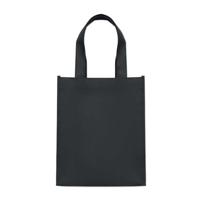 Laminated non woven thermowelded shopping bag, long handles and gusset