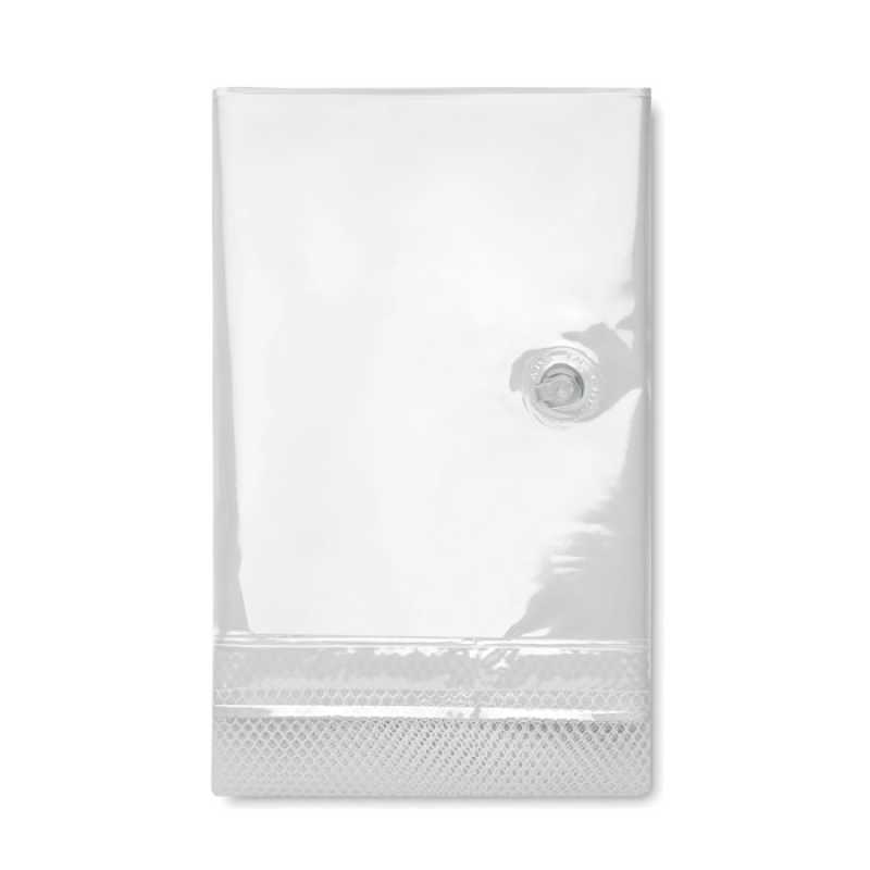 NOVINKA 2025. Original cushion made of resistant PVC. Including a comfortable head cushion with two-tone design in transparent and white colours. With strong central mesh in white polyester. Special folding for easy printing. Supplied deflated and in a practical recycled individual bag.