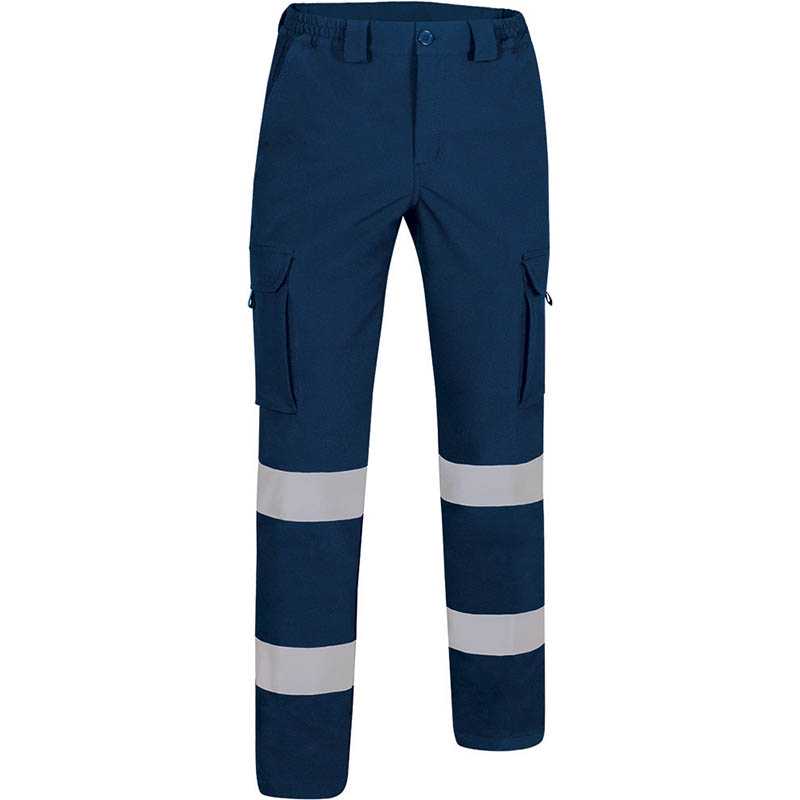 Enhanced Visibility Multi-Pocket Work Trousers. Made of complex bi-stretch fabric that improves user mobility and a water-repellent finish for greater comfort, includes two thermo-fixed elastic reflective tapes on leg cuffs for enhanced visibility and unrestricted movement. Garment certified as an Enhanced Visibility Category II PPE based on 13688 and 17353 standards, type B2 for night visibility.Two slanted hip pockets, two side velcro flap cargo pockets and a two-tone reflective puller for easy opening, two buttonhole closure back pockets for easy access and convenient storage.Double main seams and extra high-wear reinforcements with safety bartacks, ensuring long-lasting strength and durability. Suitable marking methods: embroidery, stitching and anti-sublimation heat-stickers.Ideal as workwear and uniforms.