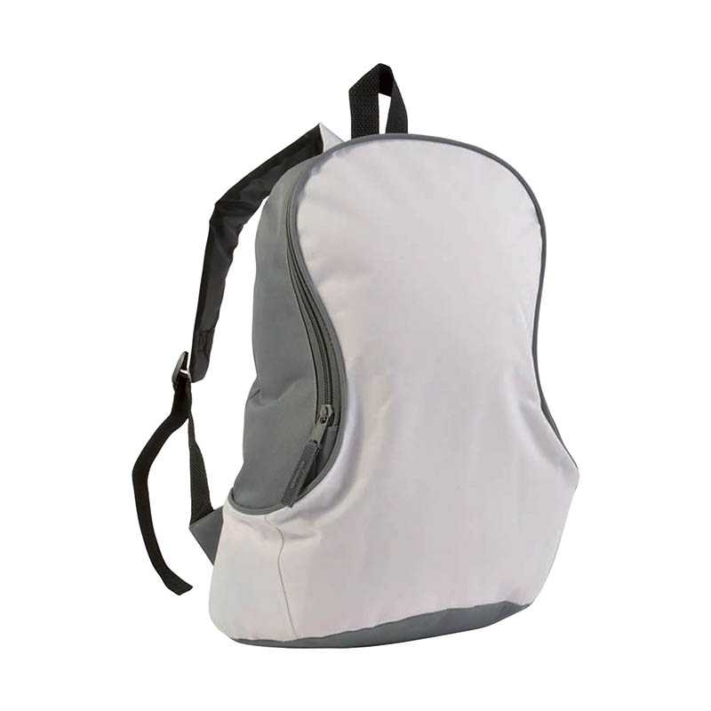 Polyester (600D) backpack with zippered front pocket, and adjustable padded shoulder straps.