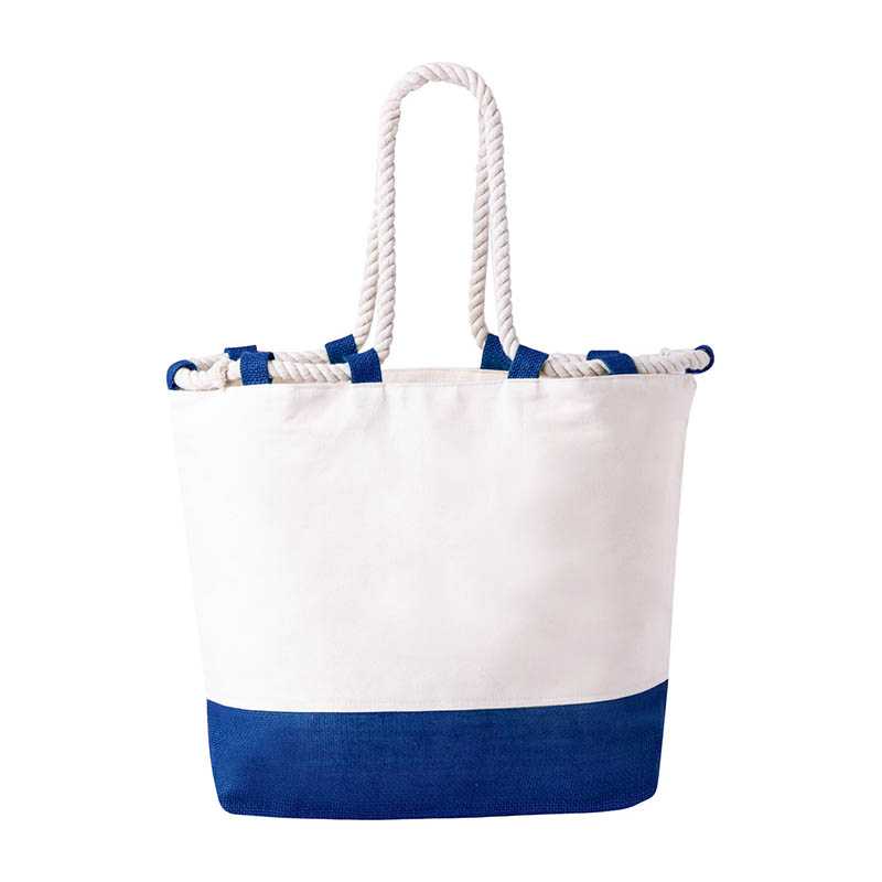Veľká plážová taška v námorníckom štýle z bavlneného plátna.Uši z bavlneného lana.Vnútorné vrecko na zips.Zapínanie na cvoky.