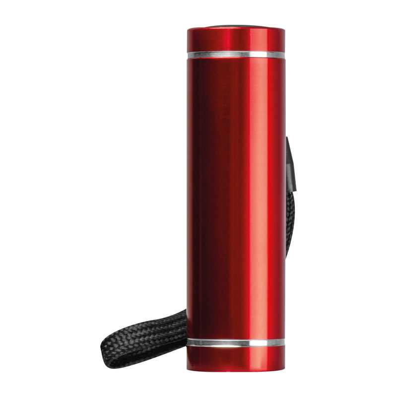 NOVINKA 2025. Resistant torch made in Recycled Aluminium. With 1 high brightness LED and a rubber coated ON/OFF push button. Comfortable carrying strap and battery operated: 3xAAA batteries (not included). Includes Recycled Aluminium logo on one side and is available in a variety of colours. Presented in a kraft design box.Recycled Aluminium is a material with almost infinite recycling possibilities, keeping its original properties and consuming less energy during this process.GRS Certification (Global Recycled Standard), which guarantees the recycled origin of the material used to manufacture the product.