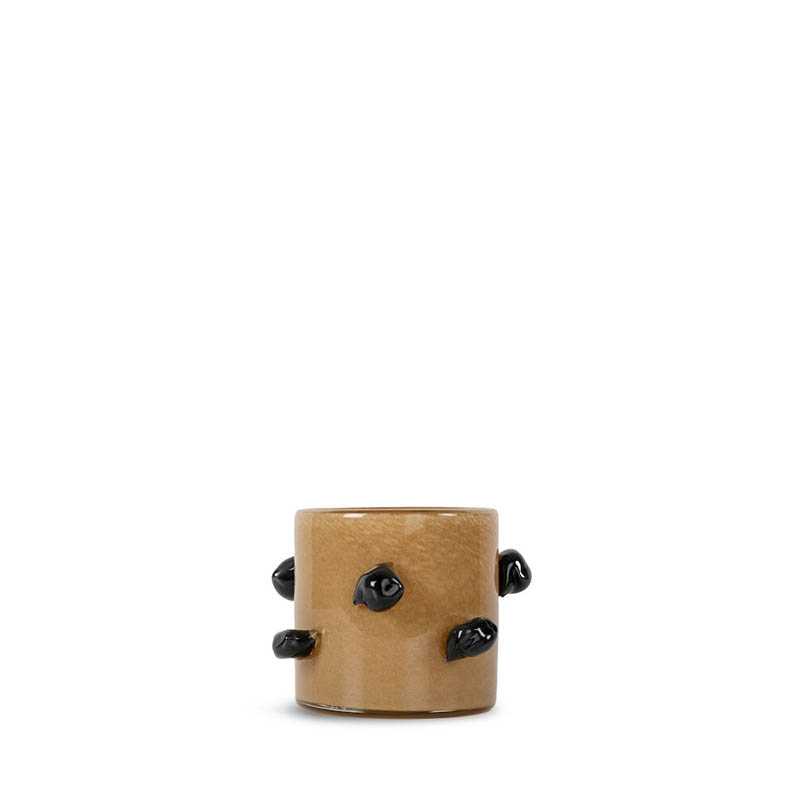 The Arlo candle holder is a playful variant of our beloved Calore. Like its cousins, Arlo is multifunctional. Use it as a vase, candle holder, or bowl. It fits everything and everywhere, especially in combination with both Lori and Lara candlesticks, where the colors are recognized. The color is classic beige with black dots, which is also iconic for Byon. Handmade, variations in color and texture may occur. Designed by Byon Studio. Delivered in a Byon box. Material: Mouth-blown glass Weight: 600 g Width: 100 mm; Height: 100 mm; Length: 100 mm Color: beige/black Technique Comment: Handmade, variations in color and texture may occur.