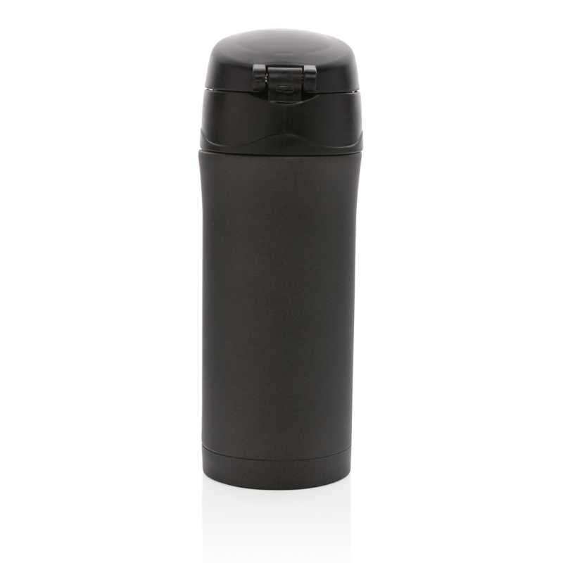 Termohrnček v modernom metalickom prevedeniu s dvojitou stenou z nehrdzavejúcej ocele. Nápoje uchová až 5h teplé a 15h studené. Uzáver je možné po uzavretí uzamknúť pre zabránenie vyliatiu tekutiny. Jedinečný dizajn umožňuje pohodlné a bezpečné uchopenie a ovládanie otvárania jednou rukou. Uzáver navrhnutý pre jednoduché ručné umývanie aj umývanie v umývačke riadu. Priemer zodpovedá väčšine držiakom nápojov do auta. Objem: 300 ml.