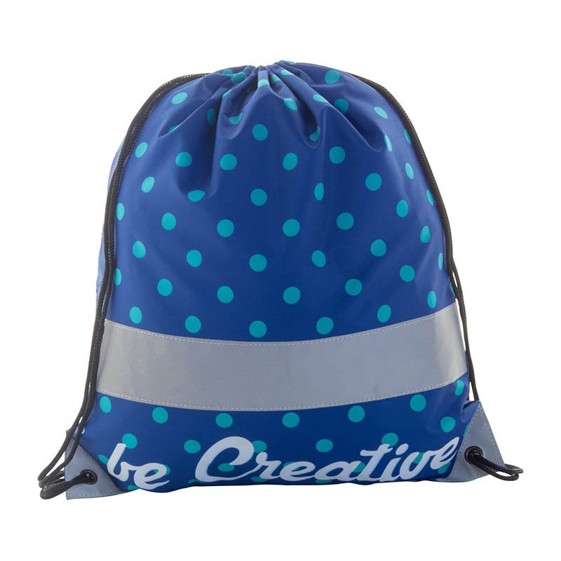Taška so šnúrkou, s reflexnou páskou a vystuženými rohmi vyrobená na zákazku, 190T polyester. Cena zahrňuje sublimačnú potlač po celej ploche. Min. mn.: 50 ks.