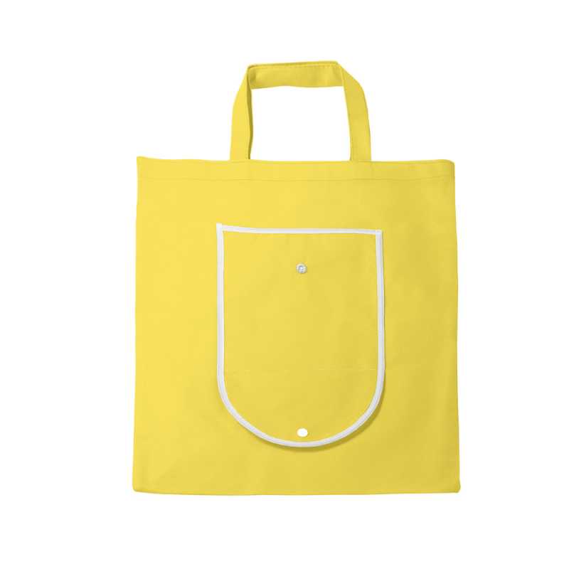 Skladacia taška z netkanej textílie (80 g/m2) s 38 cm rúčkami. Produkt sa dodáva zložený (okrem prípadu prispôsobenia na zadnej strane). Rozmery v otvorenom stave: 380 x 465 mm | Rozmery v zloženom stave: 200 x 110 x 15 mm