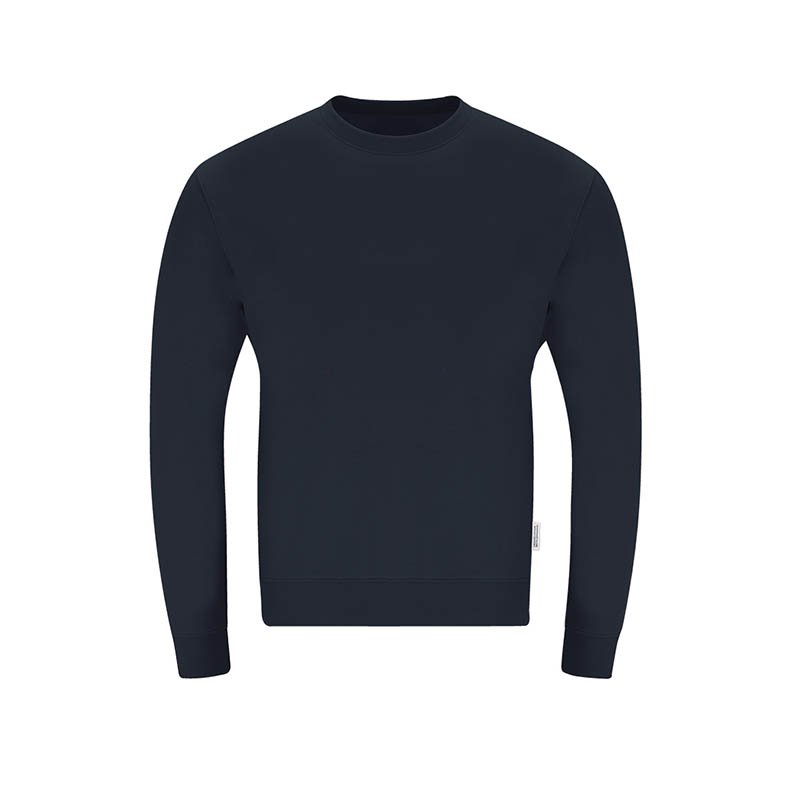 Mikina s okrúhlym výstrihom a česanou podšívkou. 2x2 rebrovanie na golieri, konci rukávov a spodnom leme. Ozdobné švy z overlockového úpletu v kombinácii tón v tóne. Moderný strih. Materiál: 80% organická bavlna 20% recyklovaný polyester. Gramáž: 280 g/m2. Certifikáty: GOTS, Fairtrade Cotton, Nordic Swan Ecolabel, Oeko-Tex