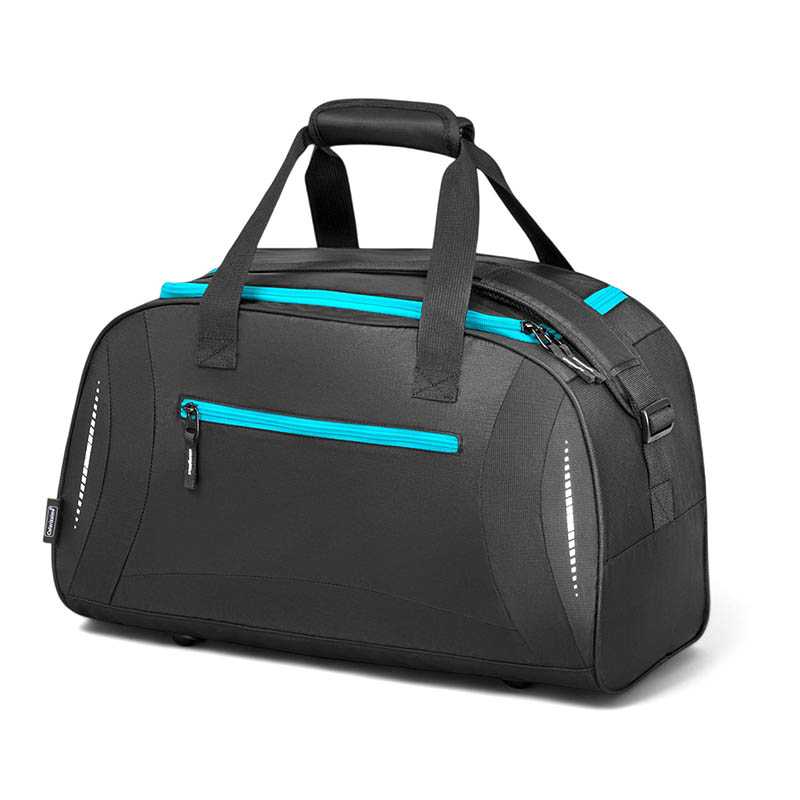 Športová taška z polyesteru 600D a 1680D. Obsahuje mnoho priestranných oddielov so zatváraním na zips v tvare písmena U, bočné oddiel na topánky s vetraním a bočnú priehradku na fľašu. Predné vrecko na zips s praktickou priehradkou na chytrý telefón alebo iné príslušenstvo na cesty. Nastaviteľný ramenný popruh a dvojitá horná ucha pre pohodlie a rôzne možnosti nosenia. Bez PVC.