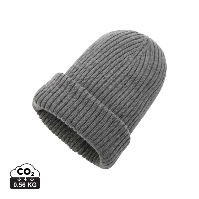 Obsahuje nejméně 50 % recyklovaného polyesteru. Luxusní příze měkká na dotek. Dvojitá vrstva úpletu. Koruna navržená pro maximální pohodlí. Manžetový design pro optimální dekoraci. Odtrhávací štítek
