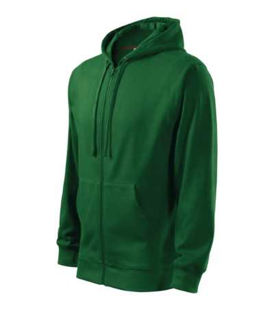 rovný strih s bočnými švami, celozapínací reverzný špirálový zips, kapucňa s podšívkou, na stiahnutie šnúrkou, vnútorná časť priekrčníka začistená páskou, nakladané vrecká v štýle klokanky, dolný lem a manžety rukávov z rebrového úpletu 2:2 s 5 % elastanu