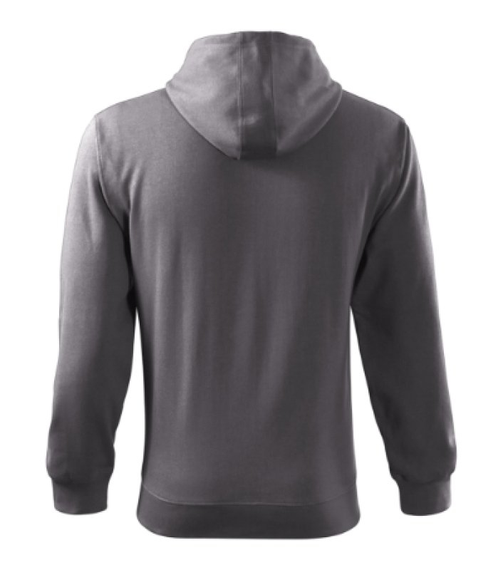 rovný strih s bočnými švami, celozapínací kostený zips, kapucňa s podšívkou, na stiahnutie šnúrkou, vnútorná časť priekrčníka začistená kontrastnou páskou, nakladané vrecká v štýle klokanky, dolný lem a manžety rukávov z rebrového úpletu 2:2 s 5 % elastan
