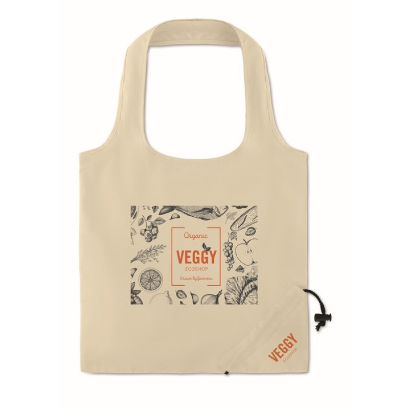 Skládací nákupní taška ze 105 gr/m2 bavlny s krátkými uchy a skládáním do kapsičky.