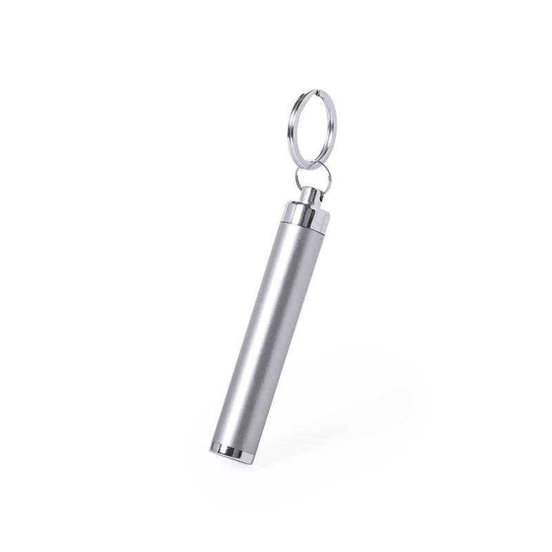 Plastová baterka s 1 LED svetlom a kovovým krúžkom na kľúče. Vygravírované logo na tele baterky svieti. Vrátane gombíkových batérií.