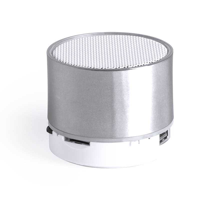 NOVINKA 2025. Compact Bluetooth® docking speaker with illuminated inside. Outside surface especially designed for laser printing to illuminate the marked logo. Bicolor design with smooth finish and Bluetooth® 3.0 connection, offers 3W power, hands-free function, a micro SD card slot up to 32GB, FM radio function, auxiliary line input via 3.5mm jack connection and non-slip rubber mounts on the base. Compatible with iOS and Android, includes mini USB charging cable, 3.5mm auxiliary jack cable and comes in an attractive design box.