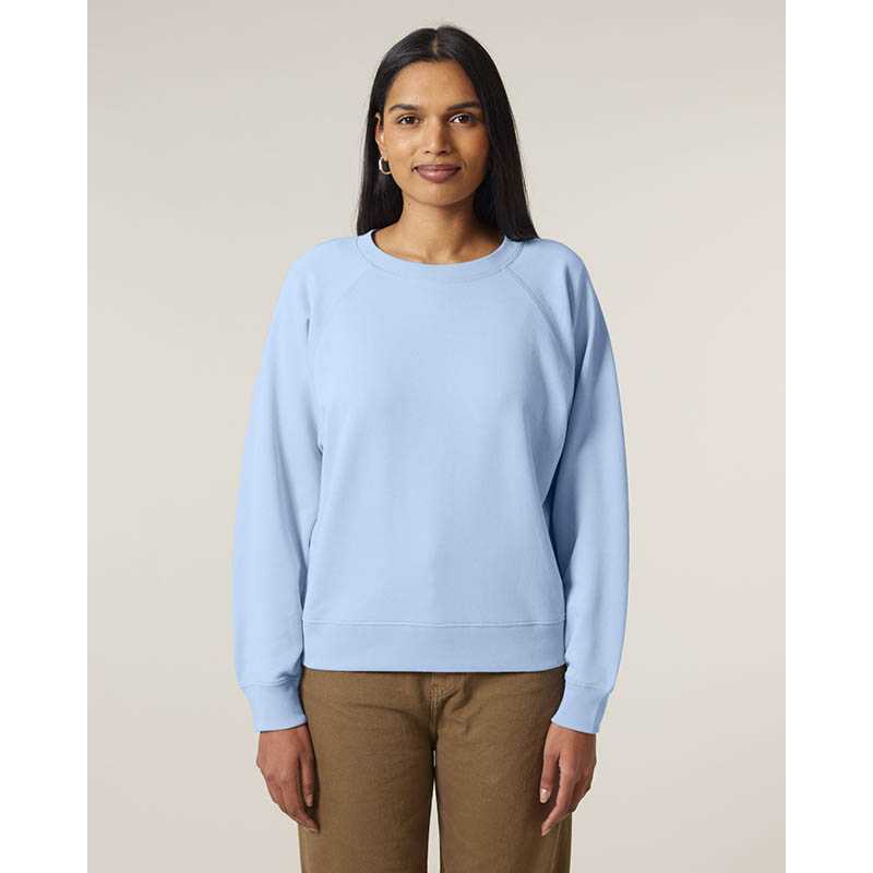 Sweatshirt with round neck and brushed lining. 2x2 ribbing on the collar edge, end of sleeves and bottom hem. Decorative seams in overlock knit set in a tone-in-tone feature. Ladies fit.