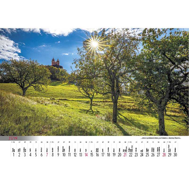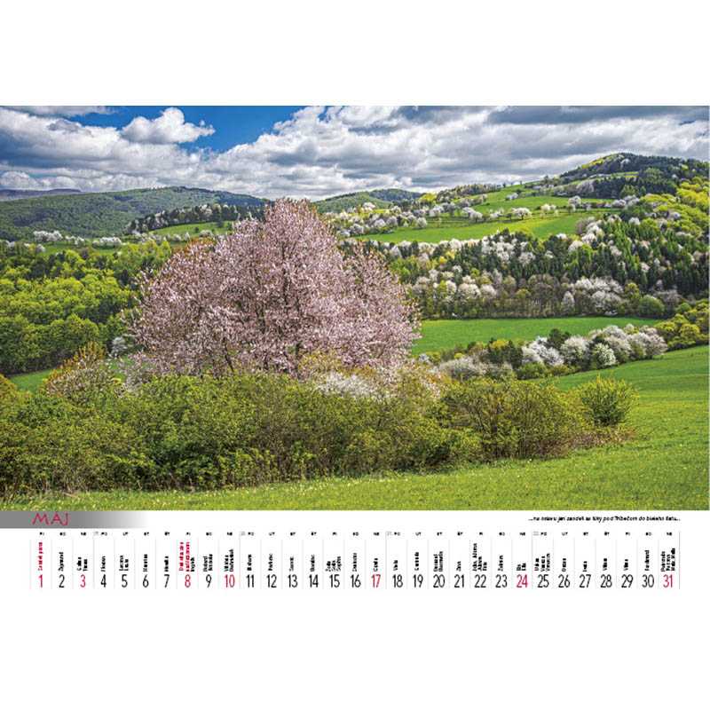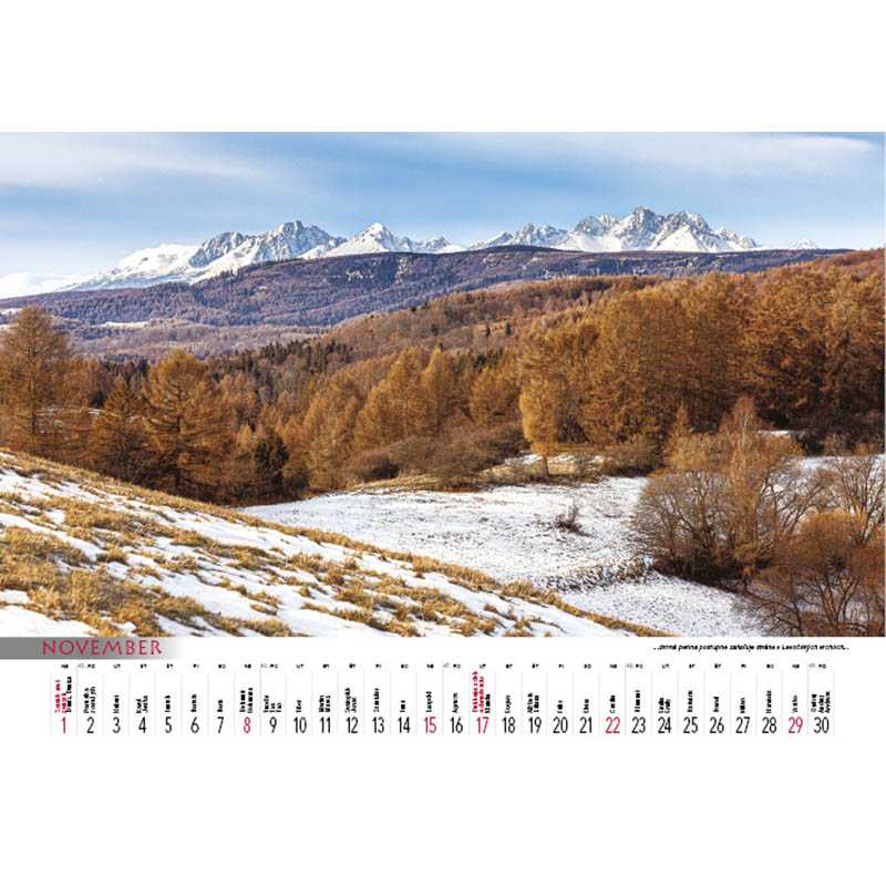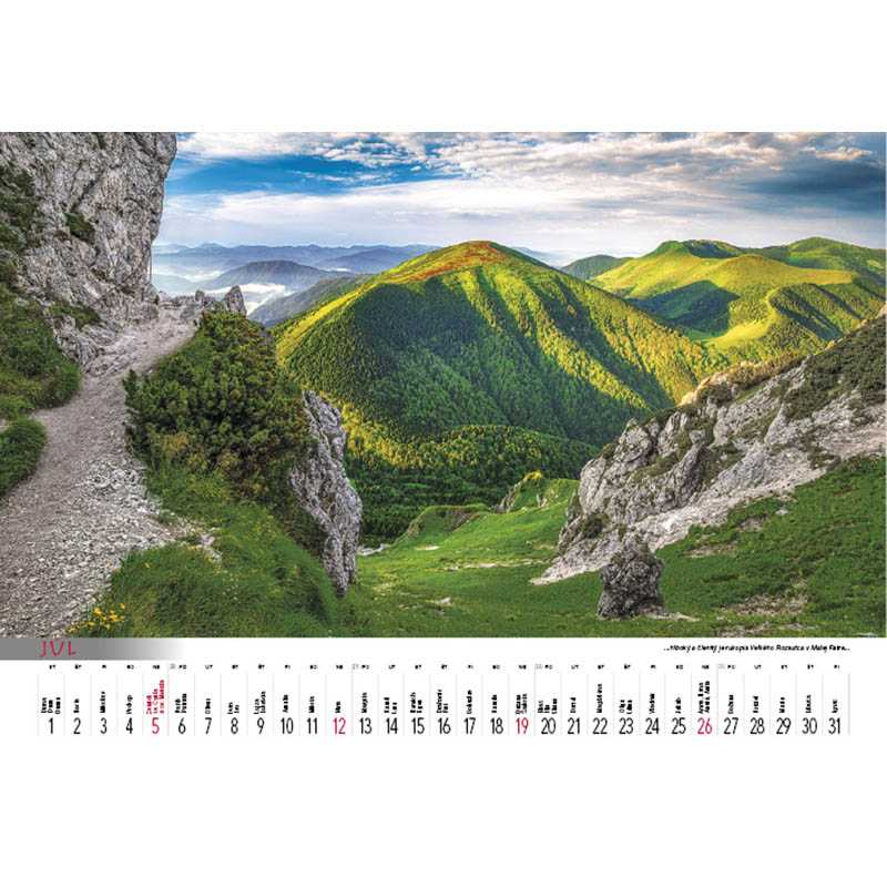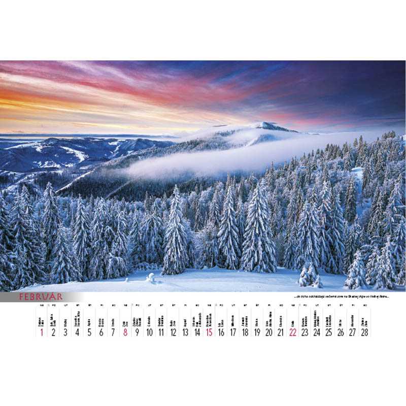 To najkrajšie a najmalebnejšie z našej krajiny v úžasných fotografiách majúcich potenciál pohladiť oko i dušu a ozdobiť akúkoľvek stenu. Priestor na potlač: 48,5 x 6 cm. Kalendárium: SK. Rozsah: 14 listov. Formát: 48,5 x 34 cm.