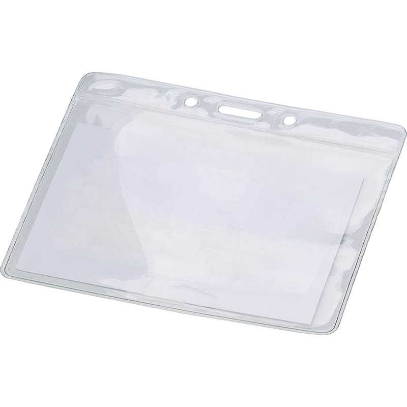NOVINKA 2025. Vertical PVC identifier. Practical badge holder with reinforced top and perforations for both central and side fastening.