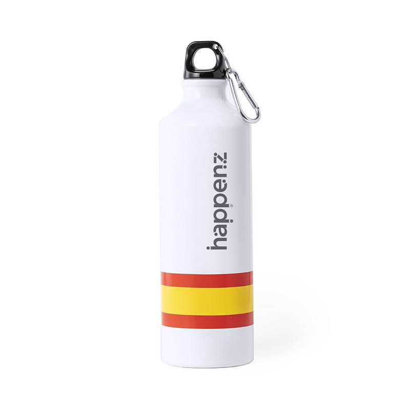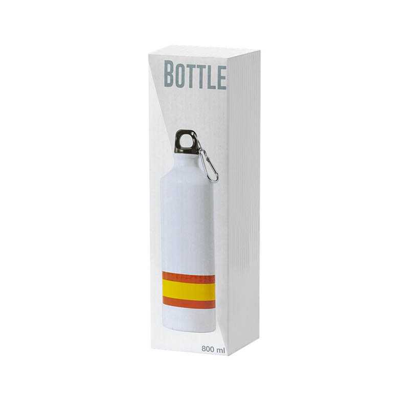 NOVINKA 2025. Bottle with Spain design and white color body. 800 ml capacity and aluminium finish, with BPA-free screw-on safety lid and carabiner for transport. Presented in an attractive design box.