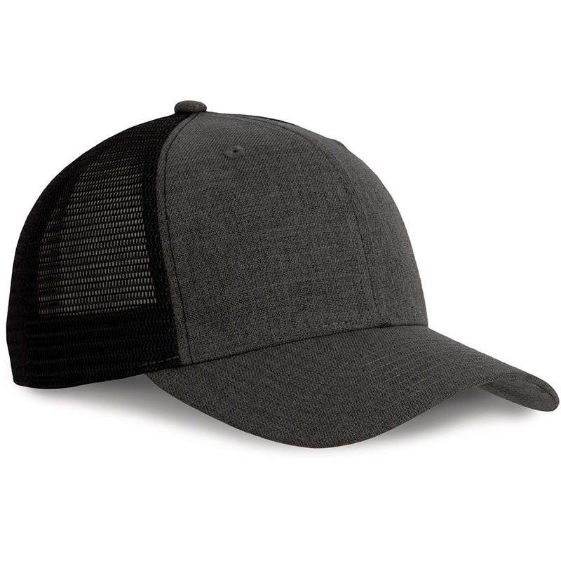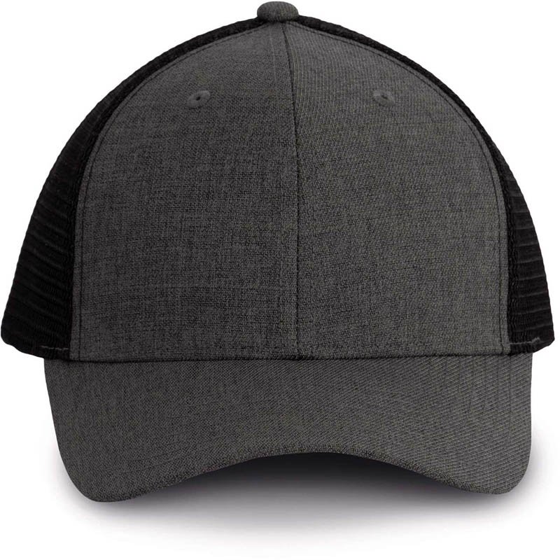 Stylová síťovaná čepice v moderním melange vzhledu.Celkově 6 panelů.Ozdobně prošívaný kšilt.Dva obšité větrací otvory na předních panelech.Plastové zapínání vzadu .24/144 . (ks v jednom sáčku / celkem ks v kartonu).