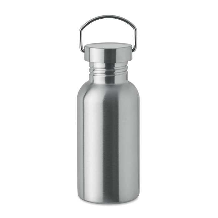NOVINKA 2025. Jednostěnná láhev z recyklované nerezové oceli (90 % recyklovaná nerezová ocel a 10 % nerezová ocel) s víčkem s rukojetí. Neteče. Objem: 500 ml.