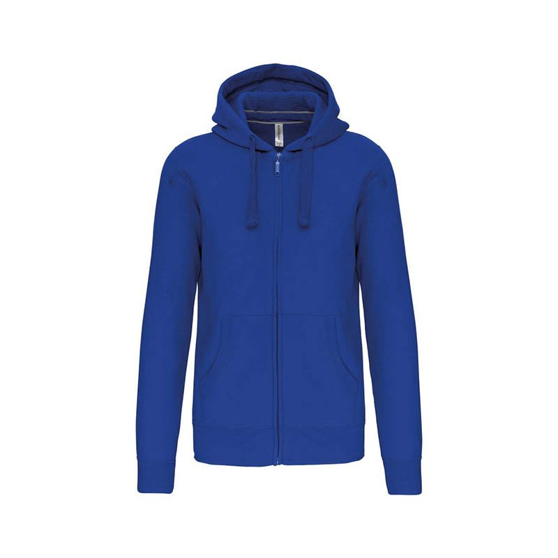 Kvalita.50 % prstencovo spriadaná bavlna – 50 % polyester.Štýl.Elastanový rebrovaný spodný okraj a manžety.Vsadené rukávy.2 klokanie vrecká.Podšitá kapucňa so sťahovacou šnúrkou tón v tóne.Skrytý zips.Rovnýs trih.Strihané a šité.